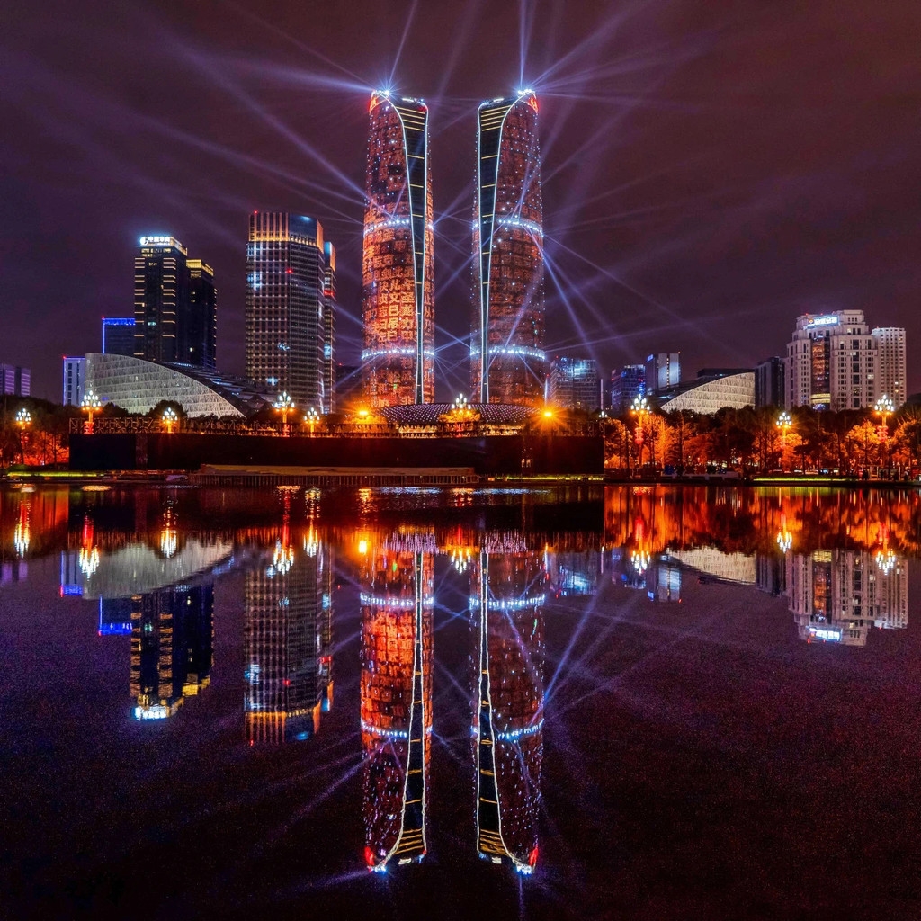 元宵节后,成都高新区金融城天府双塔的灯光秀常规上演时间为每周星期四至星期天,吸引不少市民前去观看打卡。