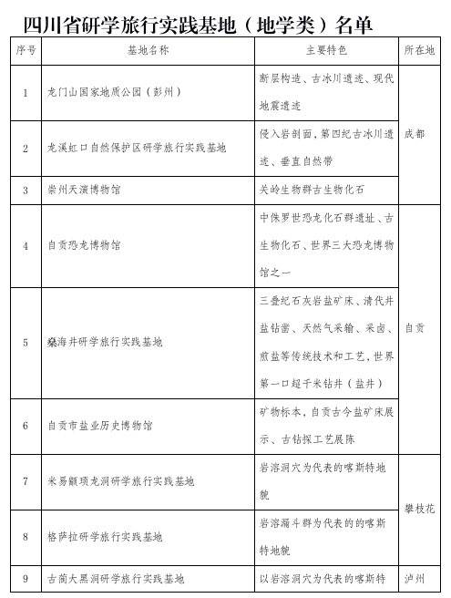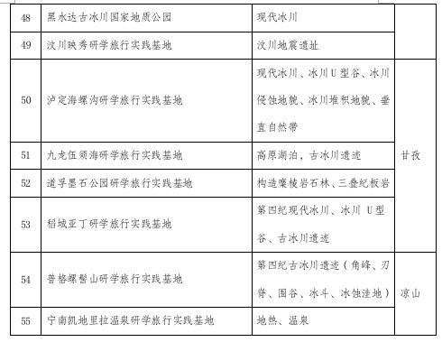 3月11日,记者从省文化和旅游厅获悉,根据《关于推荐全省地学研学旅行实践基地及精品线路的通知》(川文旅发〔2020〕91号)工作要求,在各地申报的基础上,按照地学主题鲜明、有基础条件的原则,经专家评审、专题研究,拟确定龙门山国家地质公园(彭州)等55家单位为地学研学旅行实践基地(名单详见附件),现予公示。