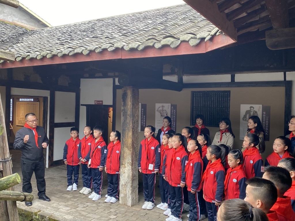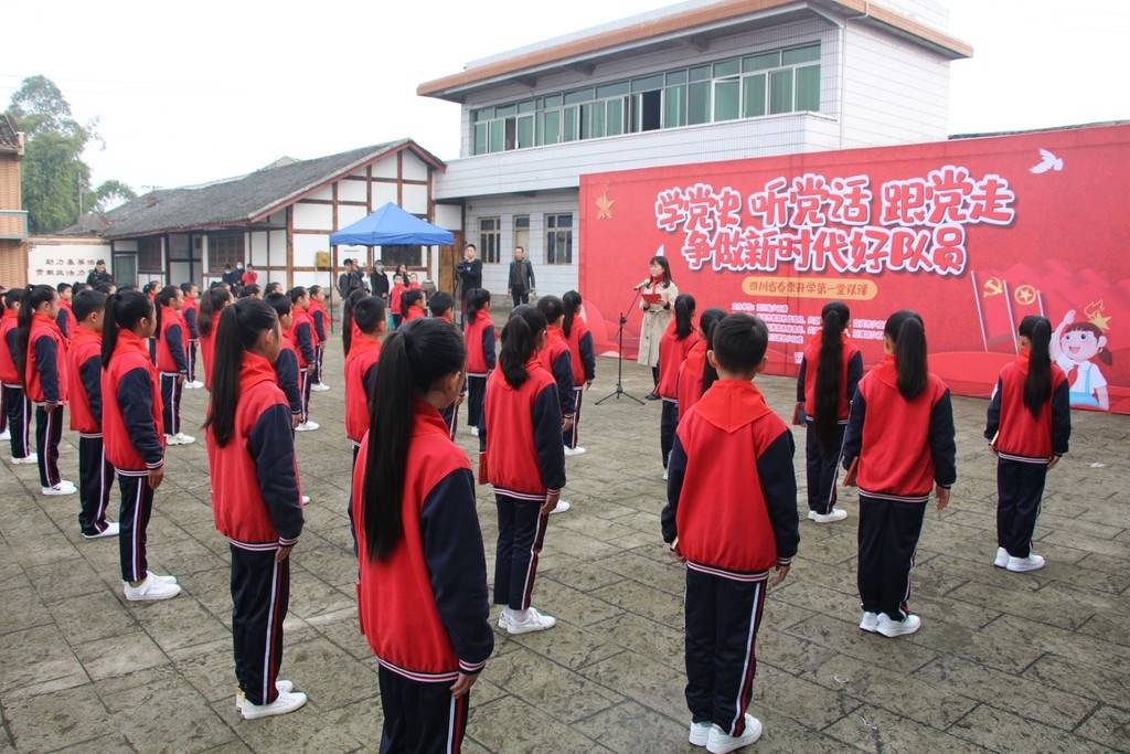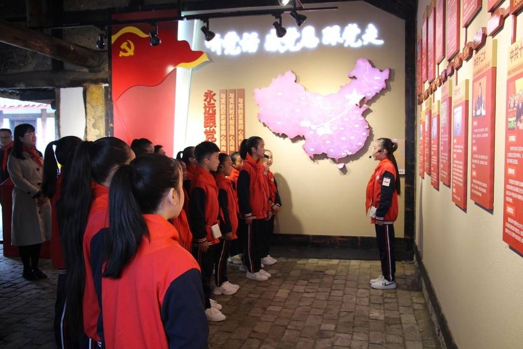 来自沿滩区逸夫小学校的45名少先队员参加第一堂队课,参观沿滩区青少年红色教育基地—詹井村村史馆,红领巾志愿者向少先队员讲解中共一大到十九大的党史故事和江竹筠、卢德铭、吴玉章等革命人物故事,现场感受詹井村脱贫奔康带来的巨大变化,在幸福生活来之不易的感悟中,认识到中国共产党的伟大,理解做共产主义接班人的含义,树立起从小听党话、跟党走,传承红色基因、争做时代新人的理想志向。