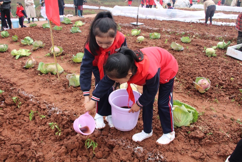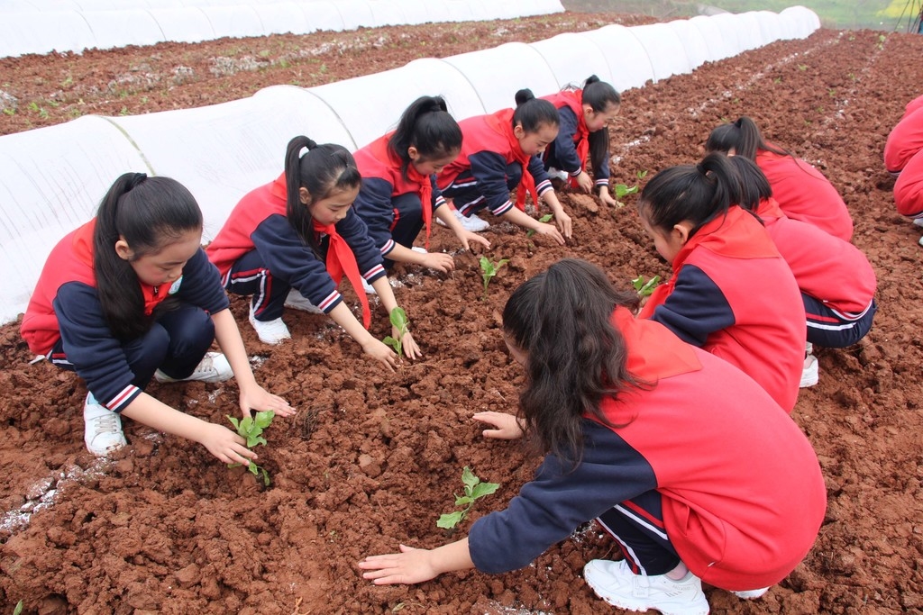在自贡市少先队校外实践教育基地—“红领巾田间课堂”上,少先队员们挖坑、播种、灌溉,挥洒汗水,忙得不亦乐乎,树立劳动最伟大、劳动者最光荣的意识,养成勤俭、奋斗、创新、奉献的劳动精神。