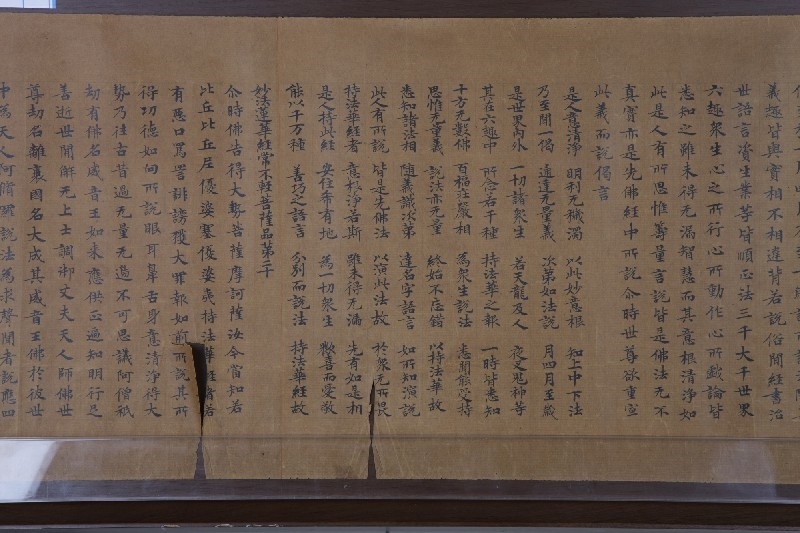 自从前秦建元二年(公元366年)僧人乐僔在敦煌开凿第一窟以后,造像以及写经活动便在此代代相传。北宋仁宗时,西夏进攻敦煌,僧众为避兵火,将大批文书藏于洞窟之复室中,然后砌一泥墙于外,并于其上绘画,以此作为伪装。四川博物院收藏的两件唐代《妙法莲华经》,明确为出自敦煌。而唐代流传至今的文字经卷,如今在全国已经相当少见。