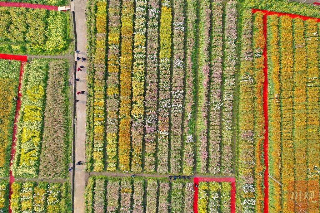 3月11日,德阳什邡市皂角街道农科村笼罩在一片彩色花海中,位于该村的孝楠农业科技百亩育种试验田多种花色的油菜花争相开放,引来不少游客驻足观看。