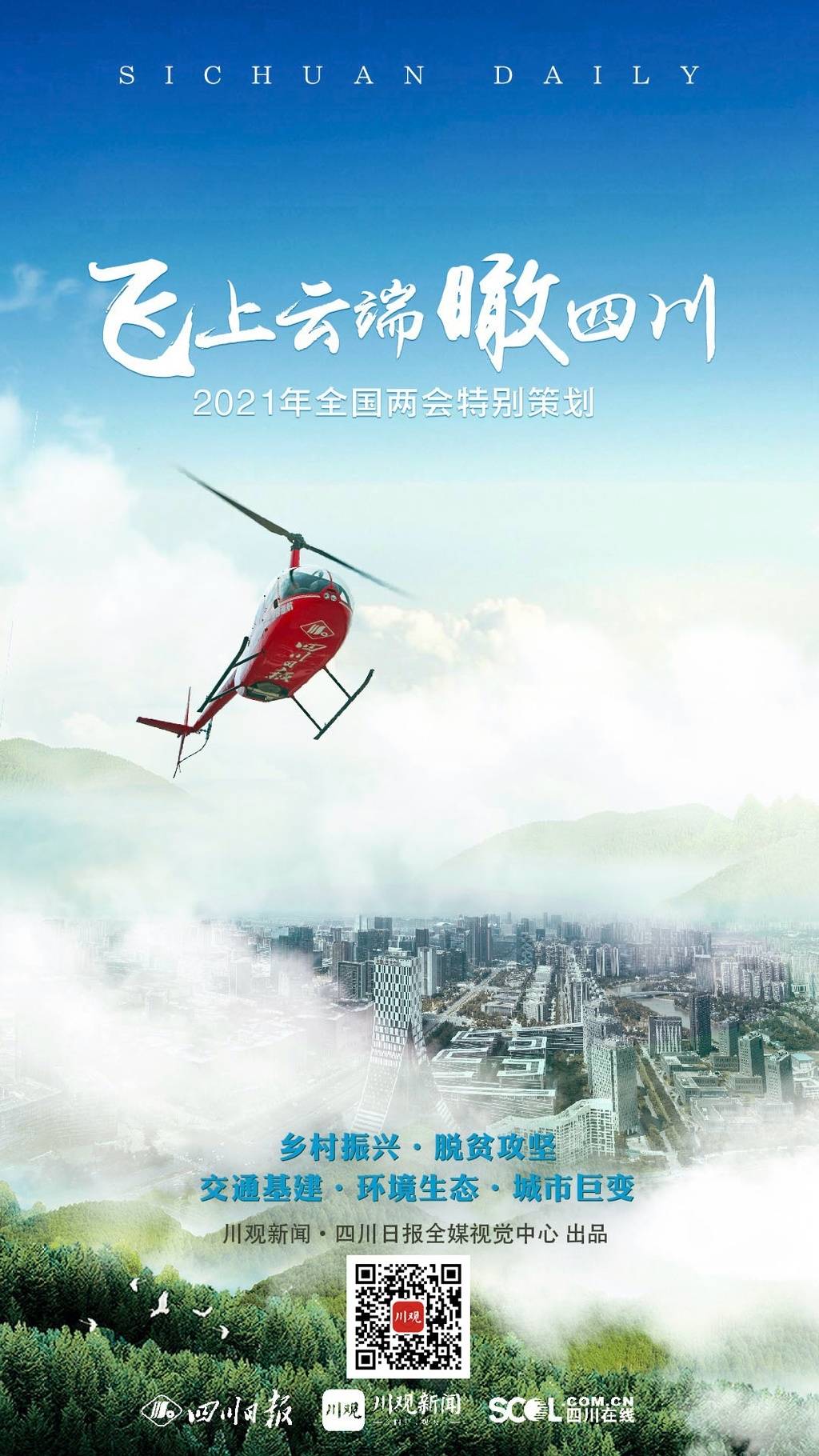 川报号直升机携手川观拍客,领航百余架无人机,飞跃21市州,鸟瞰新时代四川,人民日报客户端和央视频两大平台首页推荐每期内容进行高光展示。