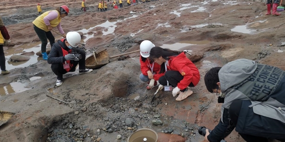 脚下是截留江水露出的砂石河道,旁边是正在清淤的挖掘机,志愿者们正在小心翼翼地清理着河床上的泥沙,生怕漏过任何一件文物......是的,这是一场别开生面的开机仪式,地点就在江口沉银遗址发掘现场。