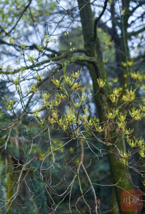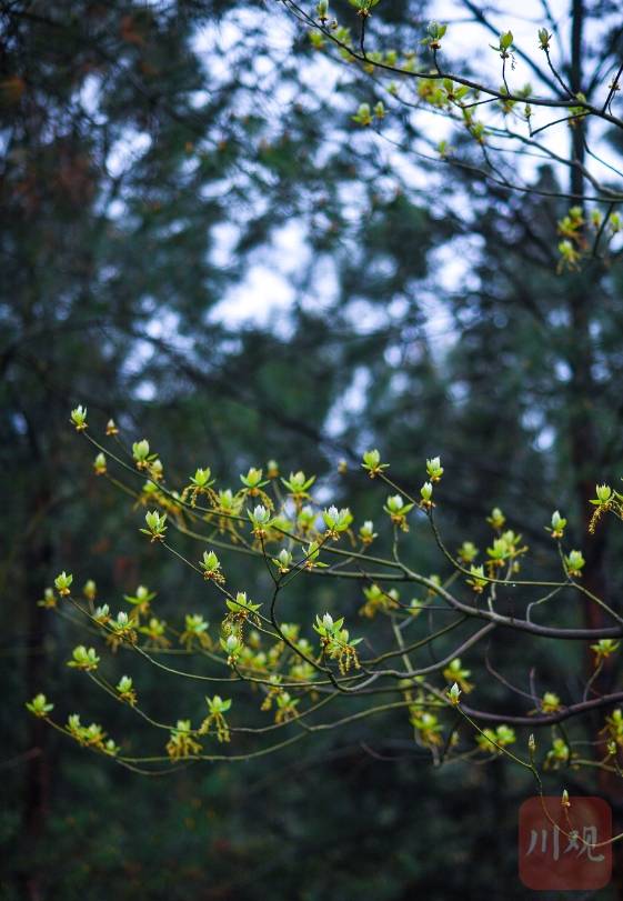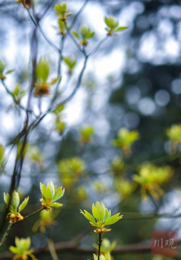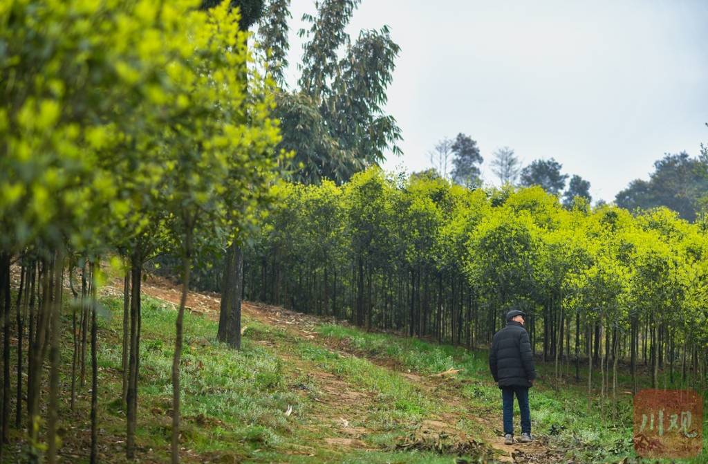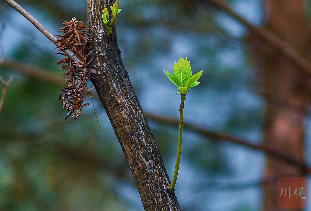 3月11日,自贡市荣县墨林乡的林场内,随着春雨的滋润,林间的树木上长出新芽,满眼的嫩绿色。当地群众在荒山上植树造林,经过20多年的奋斗,已将荒山披上绿装。