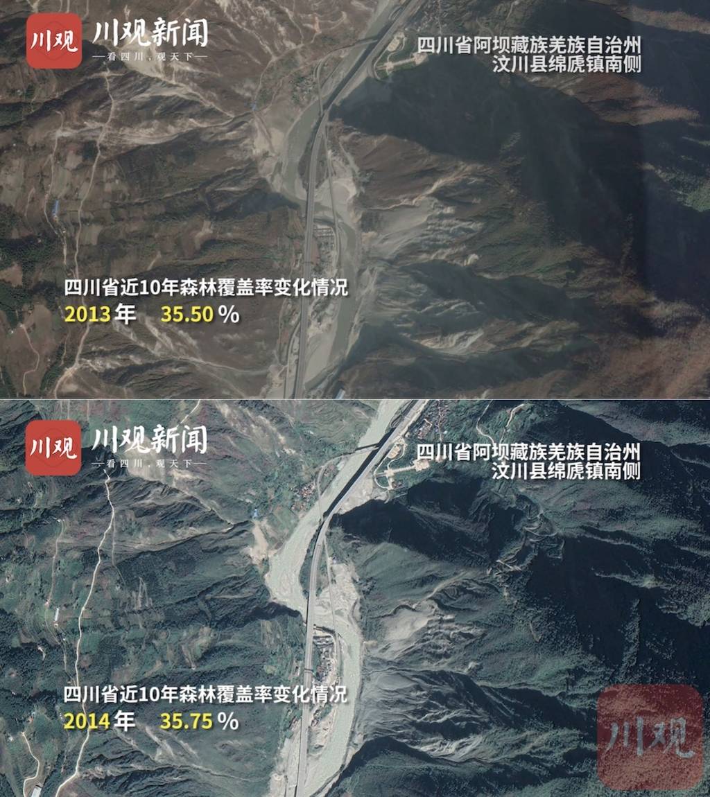 四川省阿坝藏族羌族自治州汶川县植树造林前后对比图