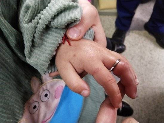 3月11日下午五点左右,雅安市消防救援支队名山大队接到紧急求救电话,一对夫妻抱着四岁多的儿子正在赶往大队的路上,因孩子的手被衣服拉链环咬住已严重充血无法动弹,当地卫生院无法救治,情急之下只能抱着孩子前往大队请求帮助。