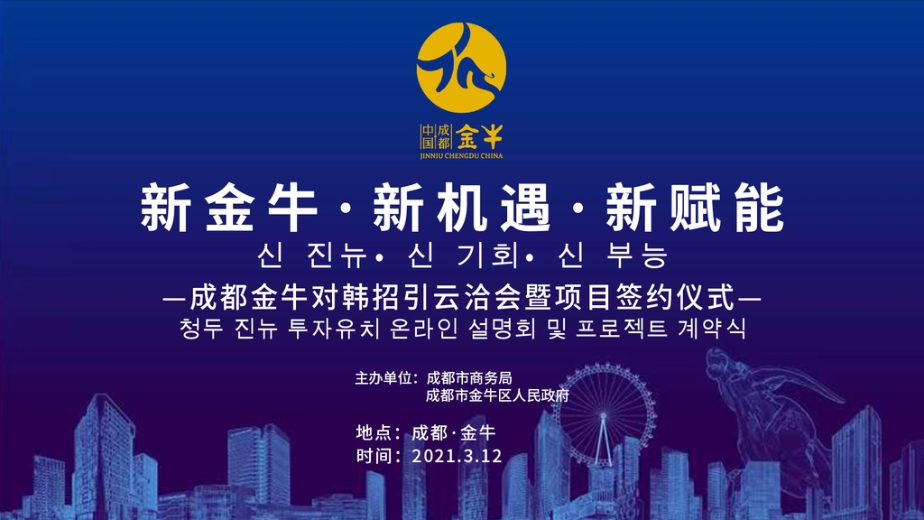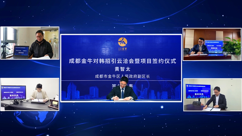 3月12日,新金牛·新机遇·新赋能——成都金牛对韩招引云洽会暨项目签约仪式在成都市金牛区政府和韩国各参会企业分会场同步举行。