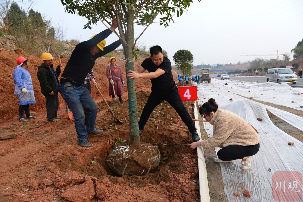 当天,中江县各乡镇植树活动也开展得如火如荼。广福镇在玉江河畔栽下100多棵紫薇树苗;回龙镇50余名机关干部,通过义务植树为沿河村金寨沟聚居点添绿增景。