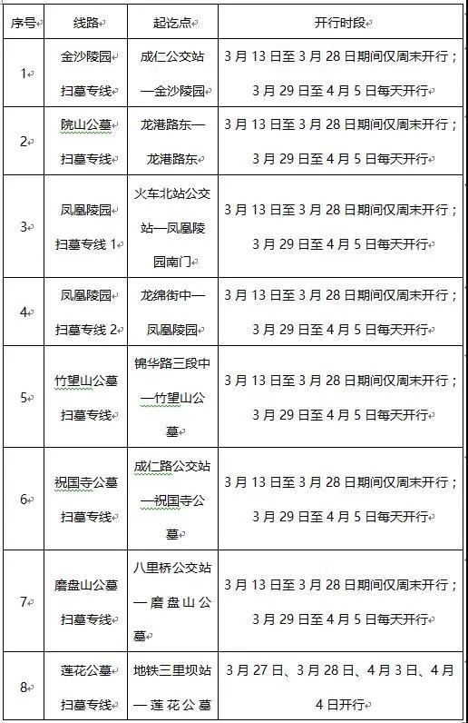 清明将至,3月12日,记者从成都公交集团获悉,为进一步方便市民前往各大陵园祭扫出行,成都公交将于3月13日起推出9条扫墓专线。