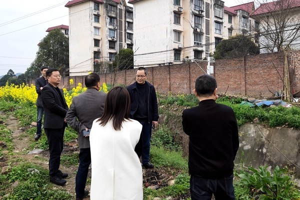 夹江县纪检监察干部到群众反映问题现场实地查看。