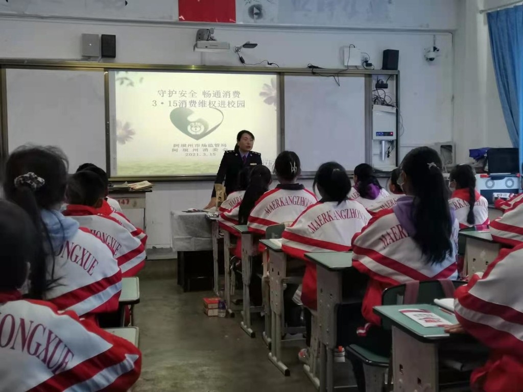 3月15日下午,阿坝州市场监督管理局、阿坝州消委会工作人员走进马尔康中学校园,以3·15专题讲座的形式为全校师生上了一堂别开生面的主题班会课。