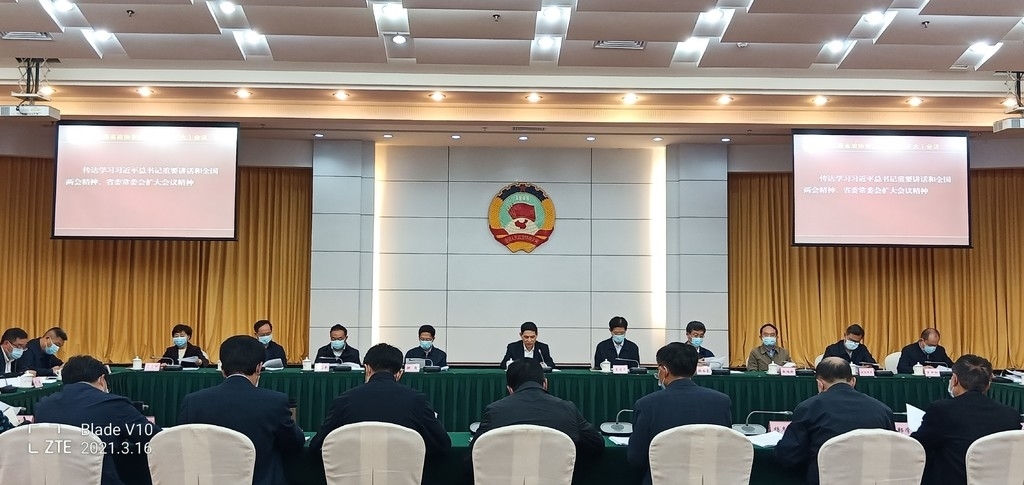 会议指出,2021年全国两会是在全面建成小康社会胜利在望、开启全面建设社会主义现代化国家新征程的重要时刻召开的一次盛会。习近平总书记参加有关团组审议讨论时的重要讲话精神,为做好当前和今后一个时期的工作指明了前进方向、注入了强大动力。要深入领会习近平总书记关于立足新发展阶段、贯彻新发展理念、构建新发展格局,推动高质量发展的重要指示精神,准确把握“十四五”时期主要目标任务和人民政协加强专门协商机构建设的新部署新要求,切实把思想和行动统一到习近平总书记重要讲话和全国两会精神上来,为开启现代化建设新征程汇聚强大合力。