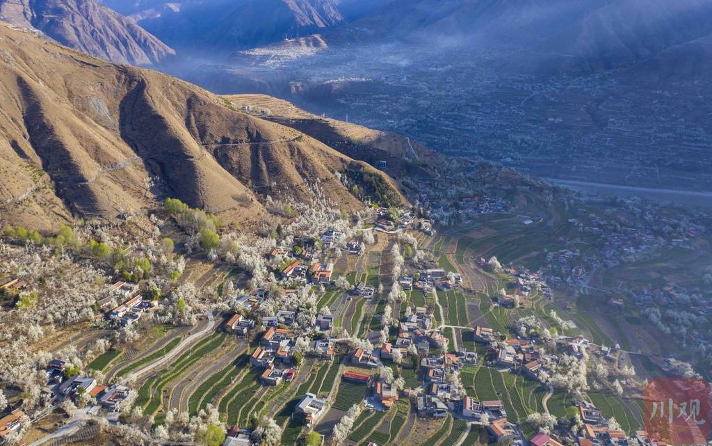 2021年3月17日,春回大地的金川河谷,万亩梨花竞相绽放。