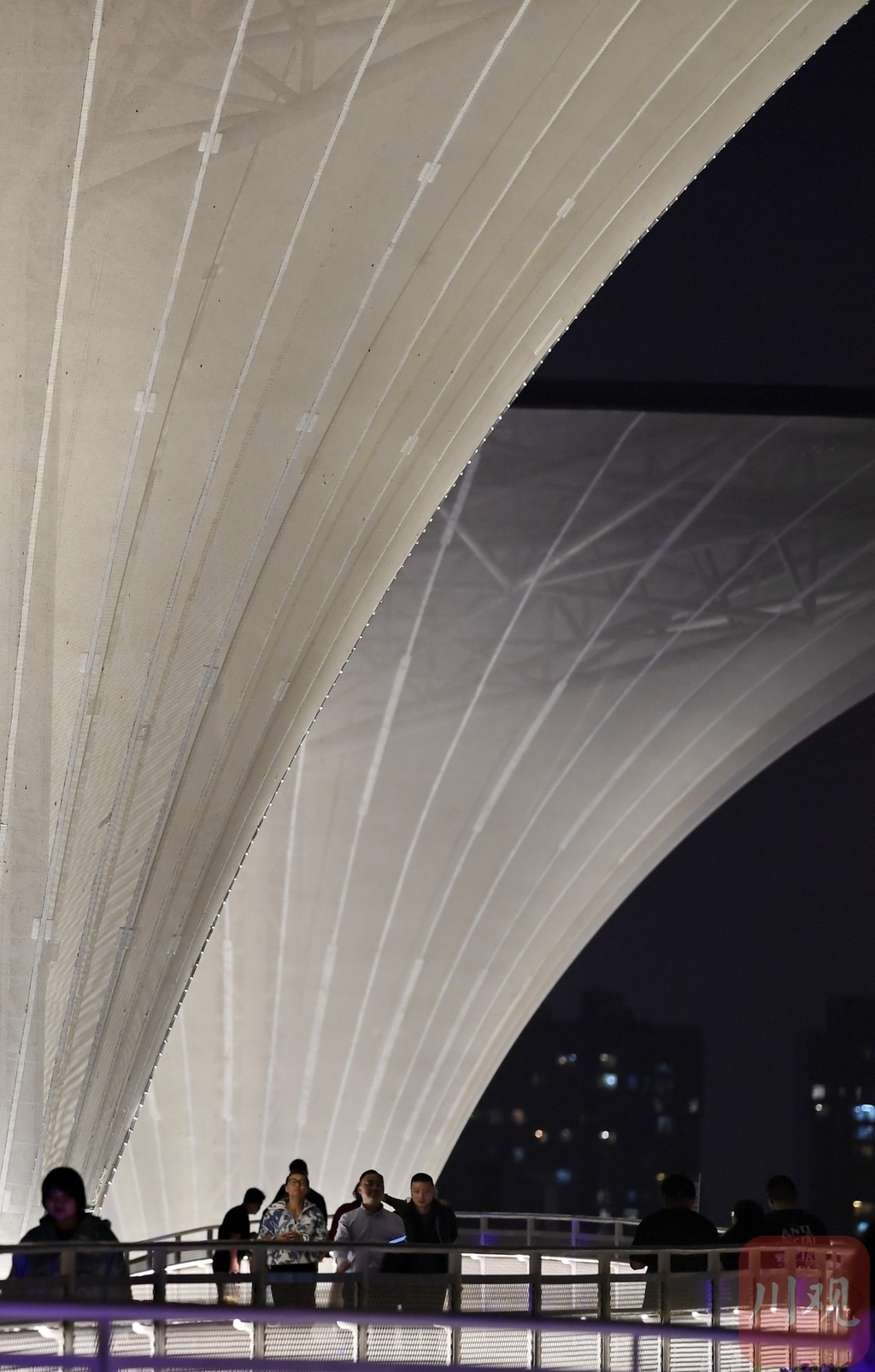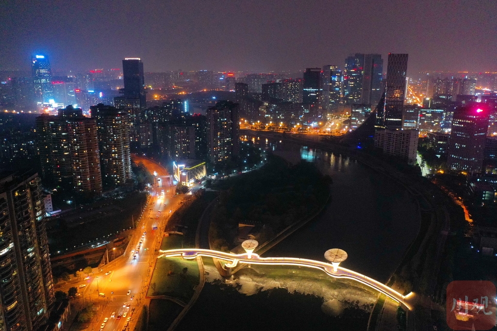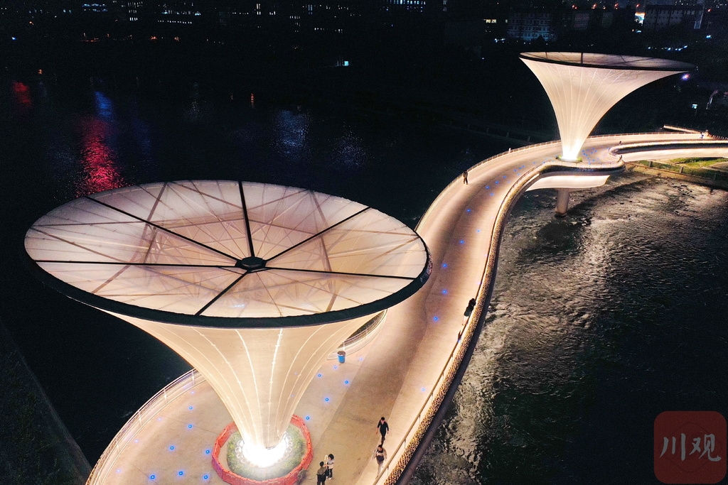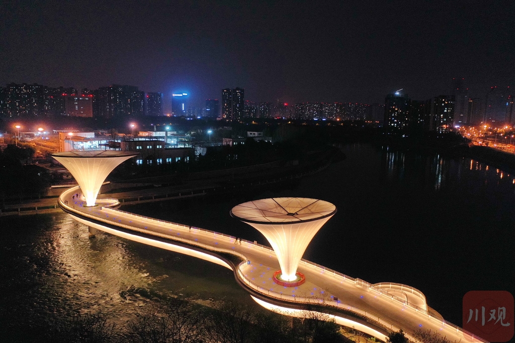 连日来,位于成都高新区老成仁路跨锦江人行天桥通行,独特的造型在夜色下迅速走红网络,成为市民新的打卡地。3月16日晚上,四川在线记者来到位于成都高新区老成仁路跨锦江人行天桥看到,桥面同波光粼粼的江水相映成趣,桥上三三两两的行人一边散步一边欣赏沿途的锦江风光。