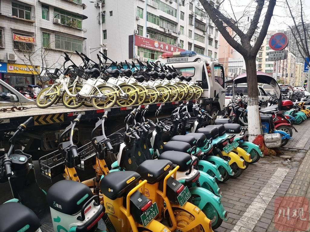 “这次准备清理2000辆。”3月17日下午3点左右,在巴中市巴州区第六中学附近的将军大道上,一辆拖车停在路旁,巴中市城市管理行政执法局巴州区分局车管大队副大队长谢果正带领工作人员清理一批落灰已久的共享单车,“这些车都是2019年进入巴中的,款式性能相对老旧,使用频率较低,统一回收后由相关的企业集中处理。”