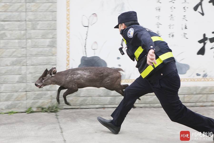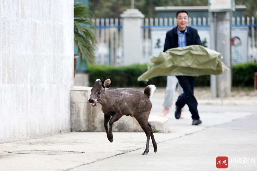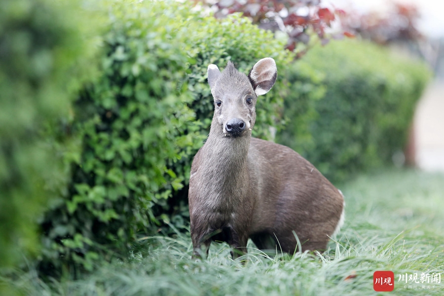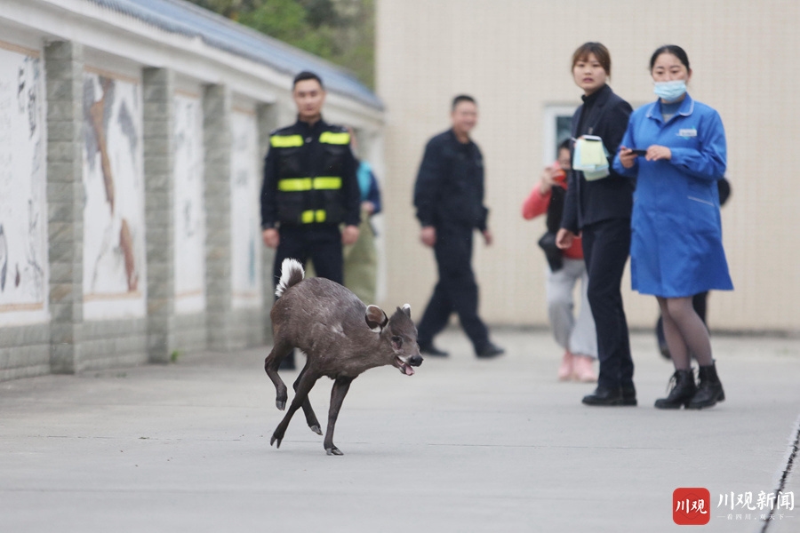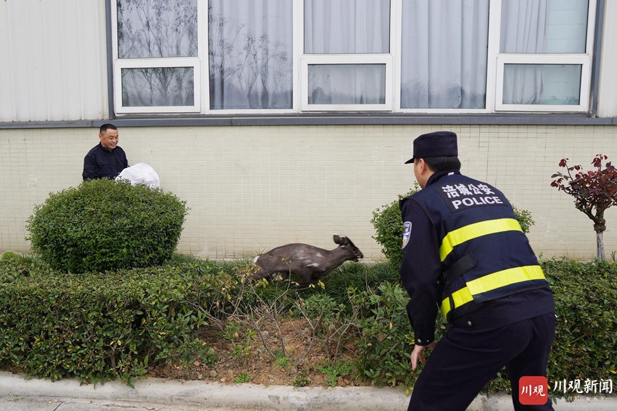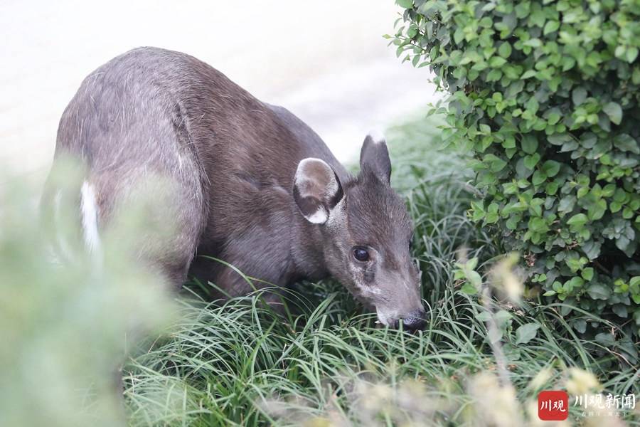 “经过与森林公安和相关专业人员辨认,该小兽名为毛冠鹿,食草科,是国家二级重点保护动物。如今生态环境变的更好,野生动物数量也在增加。”绵阳市涪城区自然资源局工作人员安光伟向记者现场介绍,以前接到过市民反映,在附近有一只毛冠鹿,但工作人员利用望远镜发现是一只母的,今天下山的是一只公的,初步估计在附近应该还有一只。