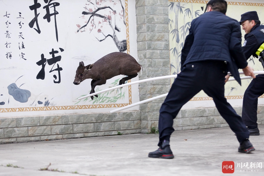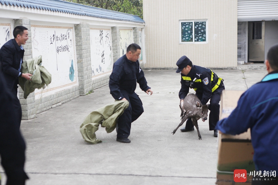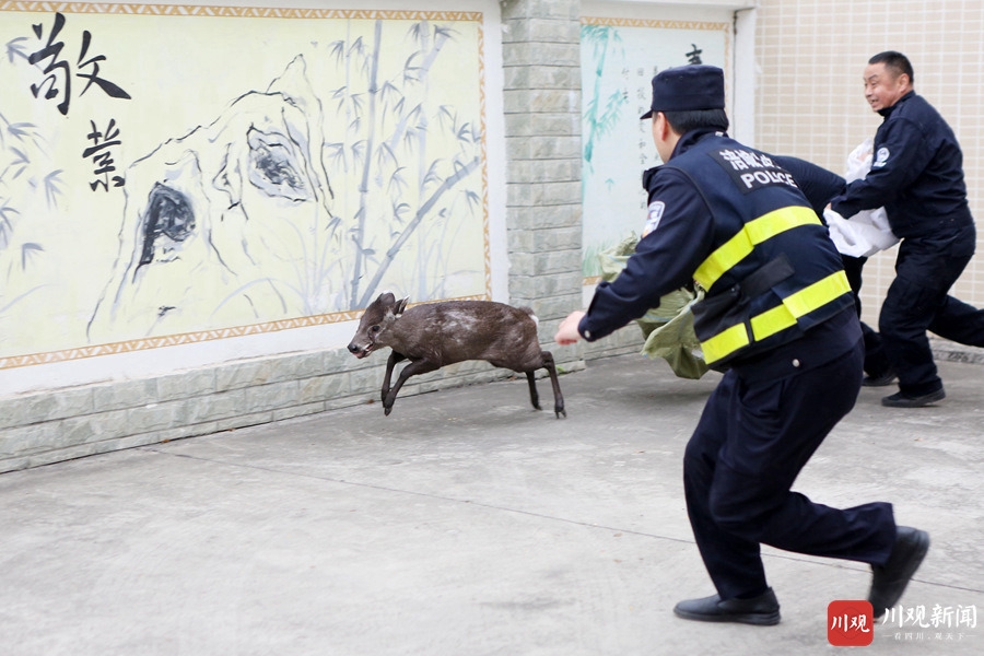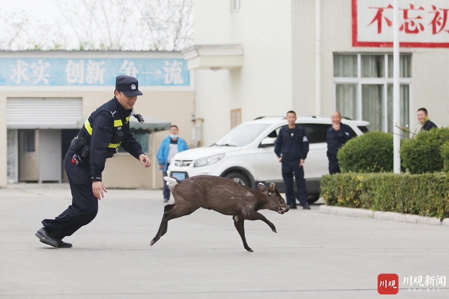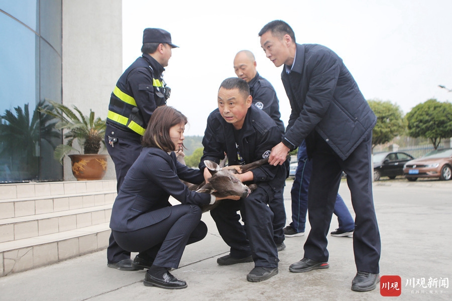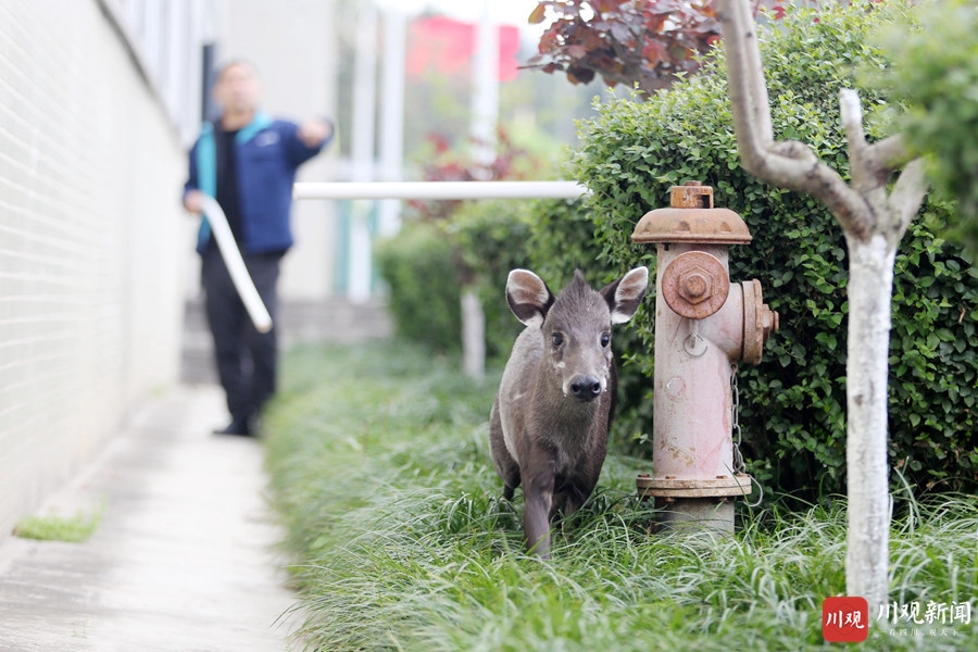 “经过与森林公安和相关专业人员辨认,该小兽名为毛冠鹿,食草科,是国家二级重点保护动物。如今生态环境变的更好,野生动物数量也在增加。”绵阳市涪城区自然资源局工作人员安光伟向记者现场介绍,以前接到过市民反映,在附近有一只毛冠鹿,但工作人员利用望远镜发现是一只母的,今天下山的是一只公的,初步估计在附近应该还有一只。