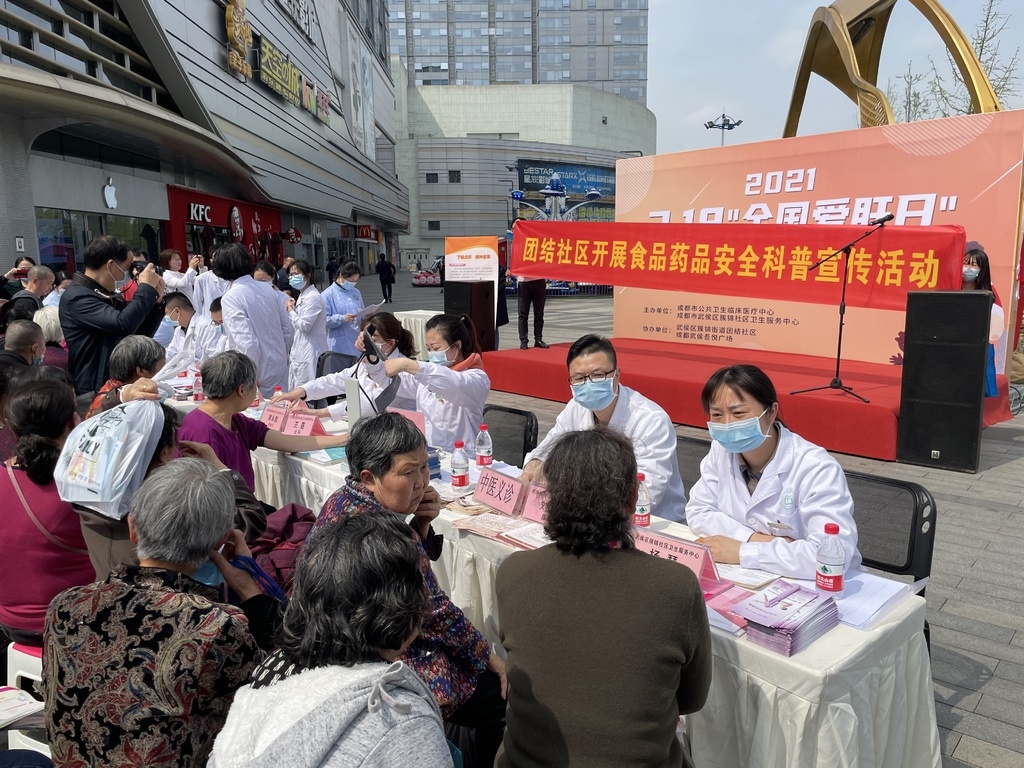 3月18日是全国爱肝日。为保障人民身体健康,推动肝病防治,当天,成都市公共卫生临床医疗中心联合成都市武侯区簇锦社区卫生服务中心在武侯区吾悦广场开展了“爱肝护肝、防治结合、遏制肝炎”义诊宣传活动。在活动现场,市民朋友们争相来到活动现场,接受专家义诊,了解肝炎肝病的防治知识。