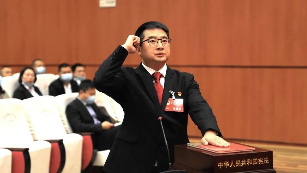 新当选的县监察委员会主任向正森进行宪法宣誓。