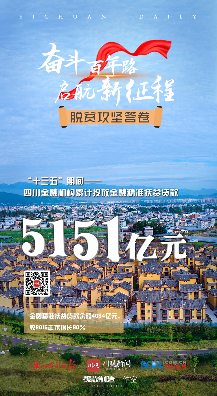 四川金融机构累计投放金融精准扶贫贷款5151亿元,全省金融精准扶贫贷款余额4034亿元,较2015年末增长80%,其中产业精准扶贫贷款余额1195亿元,是2015年末的3.96倍,保持年均30%的增长速度。