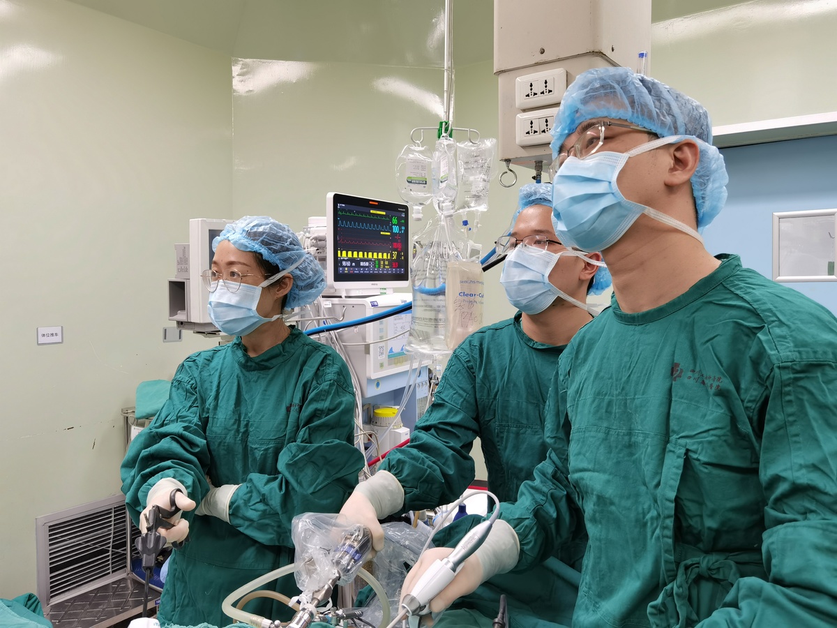 3月12日,妇产科梅劼主任坐镇手术室指挥协调,医生们精力充沛,分工合作,实施这台精心准备的手术。根据术中冰冻切片结果,妇产科黄宇团队为患者进行了盆腔及腹主动脉旁淋巴结清扫,一侧离体卵巢交辅助生殖中心冷冻、一侧卵巢由器官移植中心插管灌注拟行卵巢移植。乳腺外科罗静医生团队行腋下血管游离术,筛选与卵巢动静脉匹配血管;器官移植中心熊玮医生团队在显微镜下行卵巢血管(直径只有2mm)与腋下血管吻合再通,一次成功。