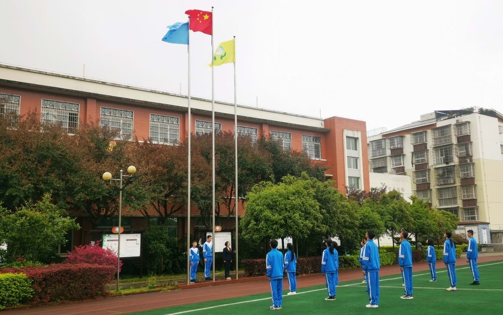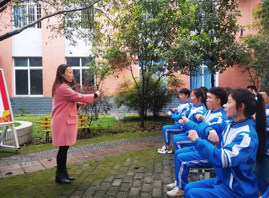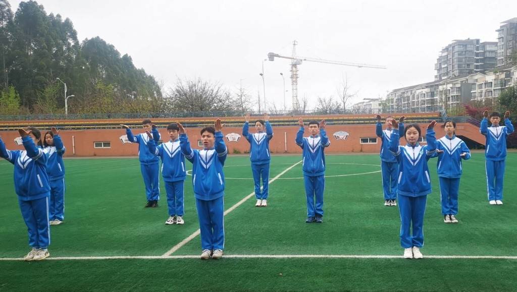 自今年3月1日起,最新版的全国通用手语国歌正式实施。什邡市特殊教育学校第一时间组织全校师生勤加练习,动作精准到了每个手势的角度。经过近两周的精心准备,特校聋生部的师生们用国家标准手语向国旗表达了敬意。
