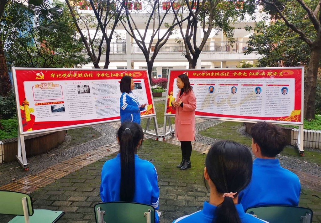今年恰逢建党百年,然而,什邡市特殊教育学校的孩子们无法像其他孩子一样听党课、学党史。为此,老师们精心准备了党史学习展板,用手语讲解的方式带领孩子们重温党的百年恢弘奋斗史诗,追忆先辈们的峥嵘岁月。