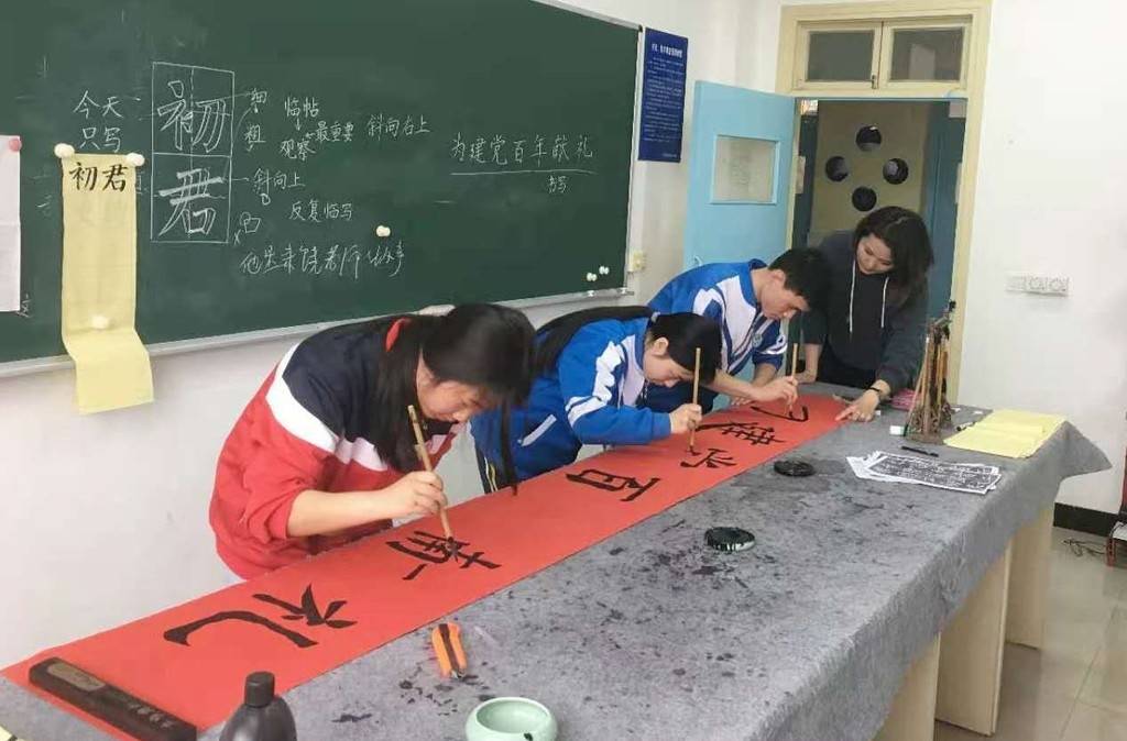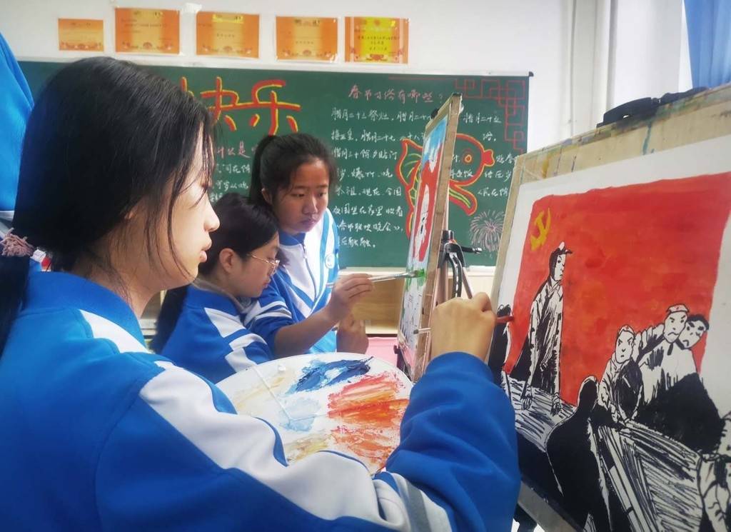 “无声”的党课悄然进行,同学们纷纷表示收获良多。“今天听了黄老师的党史课,我感到中国共产党真的很伟大,没有共产党就没有新中国,更没有我们今天的幸福生活。”聋生部学生马宇用手激动地比划着。孩子们还利用课余时间,以“我心向党”为主题进行了书法、绘画创作。