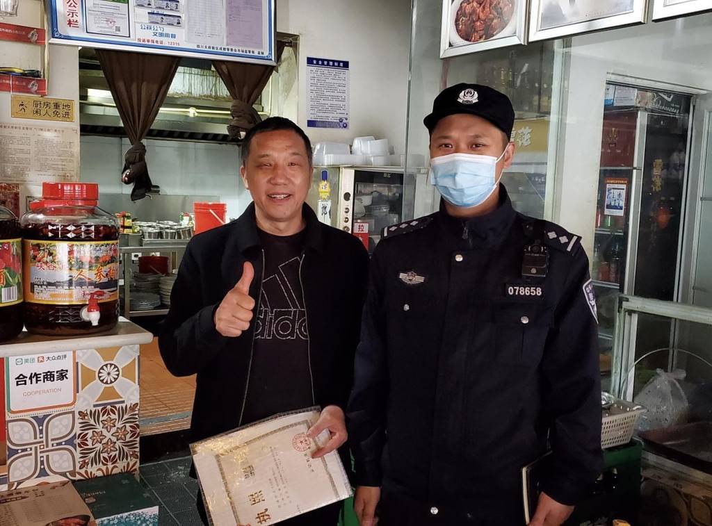 随后几天时间,教导员郝树根和杨智杰一起,多次到丽景苑向众商家收集情况,同时与工商局和社区负责人不断沟通,共同商讨解决办法。最终商议出由商家到社区提交申请,社区工作人员确认信息无误后出具证明,社区民警核实后签字,最后再由派出所重新开具门(楼)牌号变更证明。