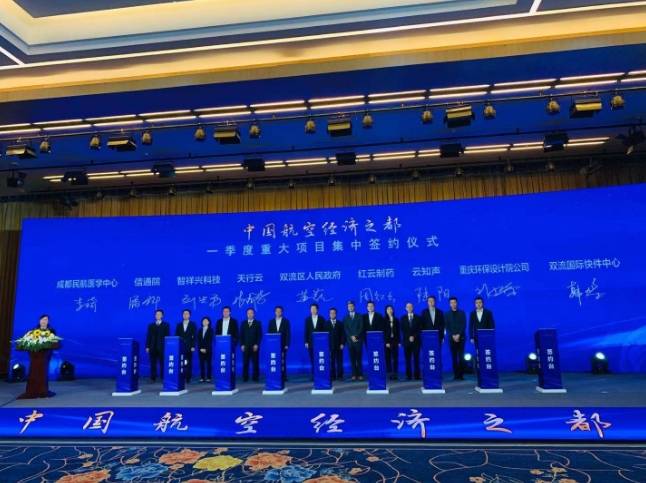 3月19日,成都市双流区在举行中国航空经济之都一季度重大项目集中签约仪式,成都建潘德韬科技园、保利中法文化交流中心等15个项目集中落地双流,协议总投资约280亿元。