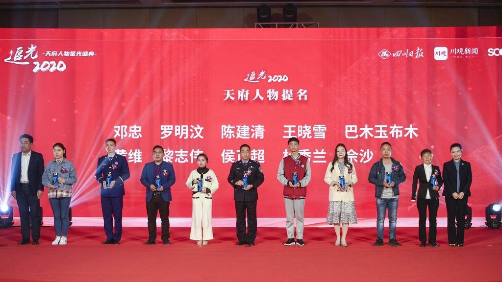 活动第一轮,首先发布的是“天府人物提名”榜单。邓忠、罗明汶、陈建清、王晓雪、巴木玉布木、黄维、黎志伟、侯正超、杜秀兰、佘沙获评追光2020天府人物提名。