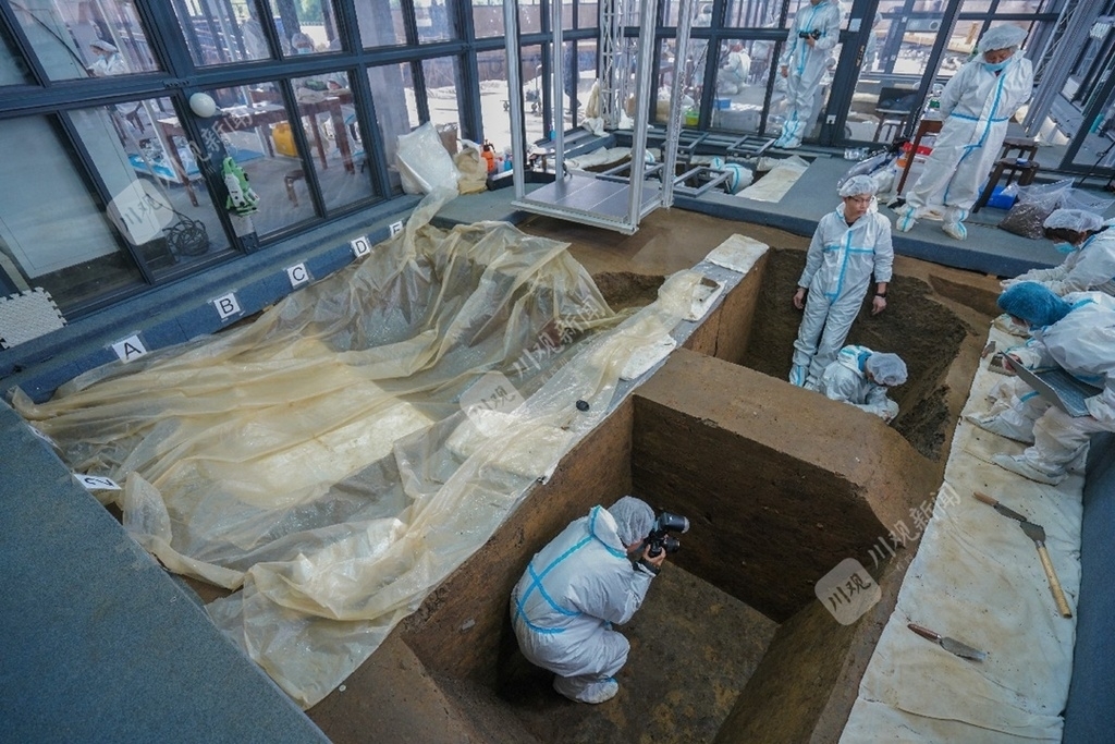 “光谱仪主要用于获取文物微弱痕迹的各类信息。”在4号祭祀坑现场工作的四川省文物考古研究院工作人员许丹阳说道。4号祭祀坑的光谱仪外表看上去像一个长方形的黑匣子,光谱仪两侧延伸出横轴和纵轴支架,与祭祀坑边缘走向重合,支架上有探测器,每发掘一部分土层,横纵轴的探测器就分别“扫描”一次。