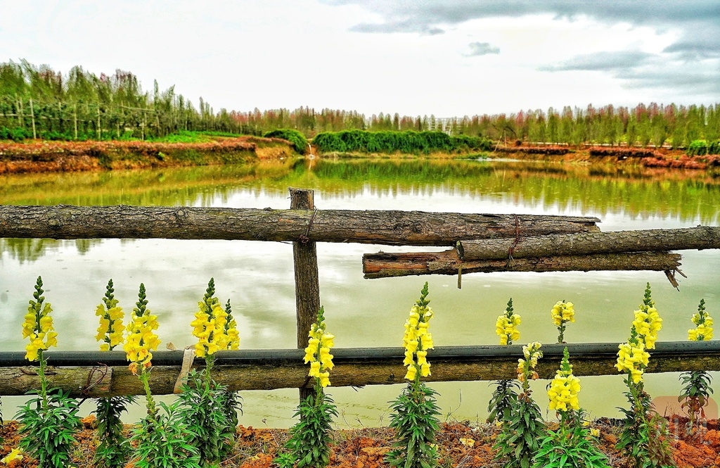 过安州车行几里的百花乐园内,“游人不管春将老,来往亭前踏落花”的唯美的古诗下,凌落满园的梨花、樱花,正艳的海棠和绽放的牡丹,透过蔷薇栅栏的绿荫小径,池塘边三两只饮水展翅的麻鸭为此景更显诗情画意。