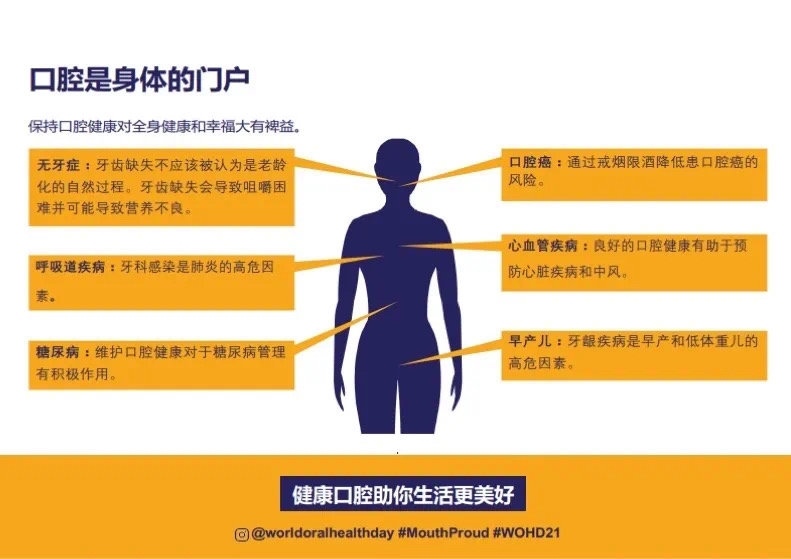 3月20日是“世界口腔健康日”(又称“国际爱牙日”),但是,全球近35亿人都受到口腔疾病的困扰。常常导致疼痛、不适、社交孤立、丧失自信、减少工作或学习时间,影响生活的方方面面,并与其他严重的健康问题有关。所以,口腔也被称为身体的门户。