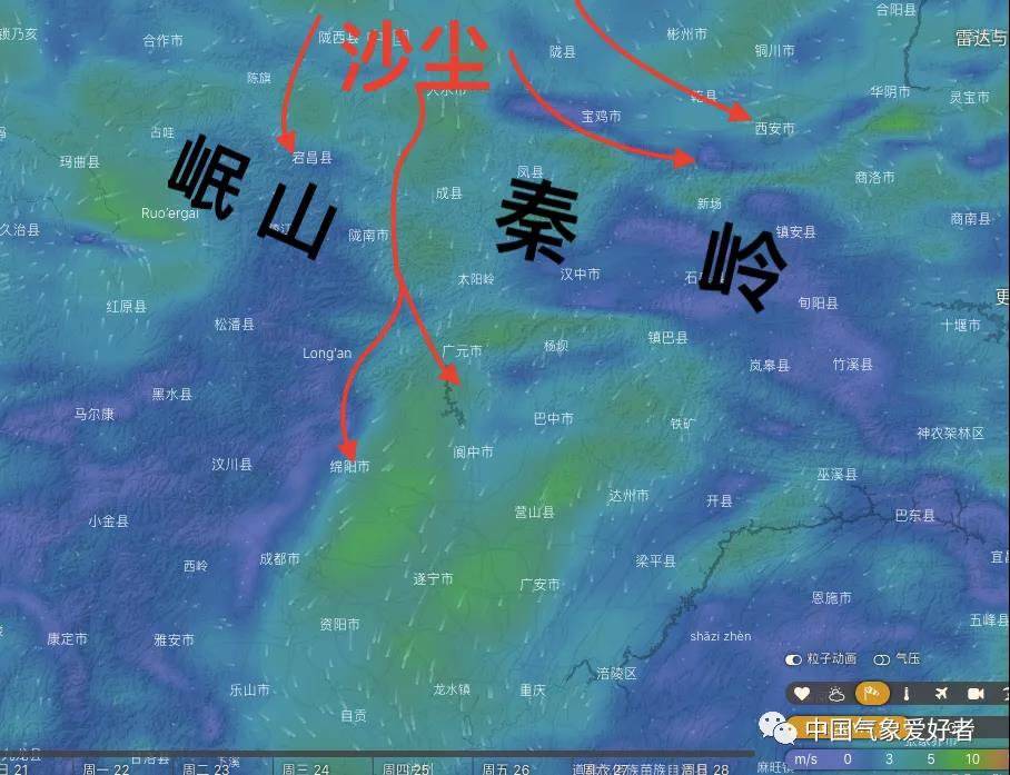 近日,北方地区沙尘天气持续,内蒙古、甘肃西部、宁夏中北部、北京多地出现沙尘暴或强沙尘暴,四川盆地处于北方主要沙源地下游,因为有秦岭和大巴山这两座“天然屏障”,才得以尽可能少的受到沙尘天气的“侵袭”。虽然大面积黄沙翻不过秦岭山脉,但是有了南下冷空气这个“顺风车”,少量浮尘仍旧被输送进了四川盆地。