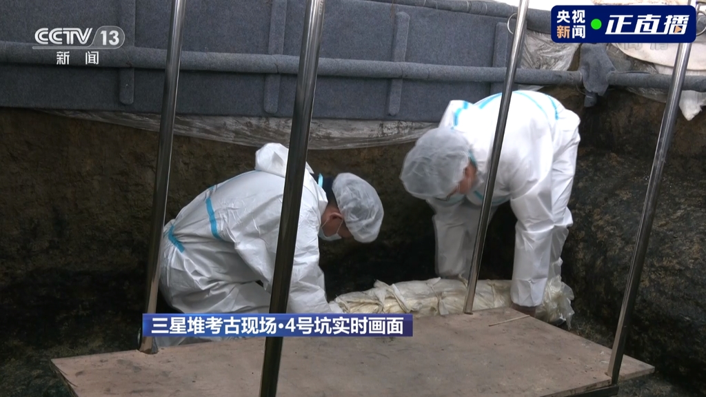 3月21日下午,象牙提取和牙雕提取同时进行,用石膏布包裹好的象牙超过了100斤,需要两个人才能抬得动,之后送往专门的文物保护中心。而牙雕则是考古人员俯下身小心地用插板进行提取,提取后可以直接送入到现场设置的有机实验室进行现场的“文物体检”。