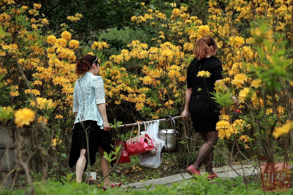 成都的二,三月间,桃红柳绿,百花争艳。才谢了杏花李花,又粉墨登场桃花樱花,田里的油菜花也不示弱,开得金灿灿,逗得成都人纷纷奔向野外,约会春天,拥抱自然,享受生活。