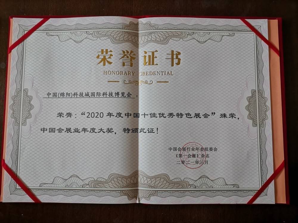 3月22日,四川在线记者从绵阳市经合局了解到,在3月18日-20日举办的“第十八届中国会展行业年会(CCEIM)年度颁奖盛典”上,中国(绵阳)科技城国际科技博览会荣膺中国会展年度大奖“2020年度中国十佳优秀特色展览会”殊荣。