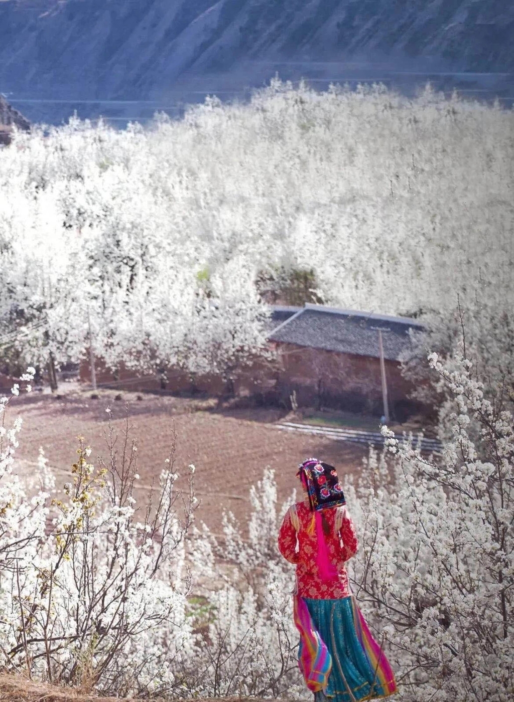 甘孜丹巴美人谷,一场梨花林下的春天成人礼,见证少女盛装出席,在春天长大成人。