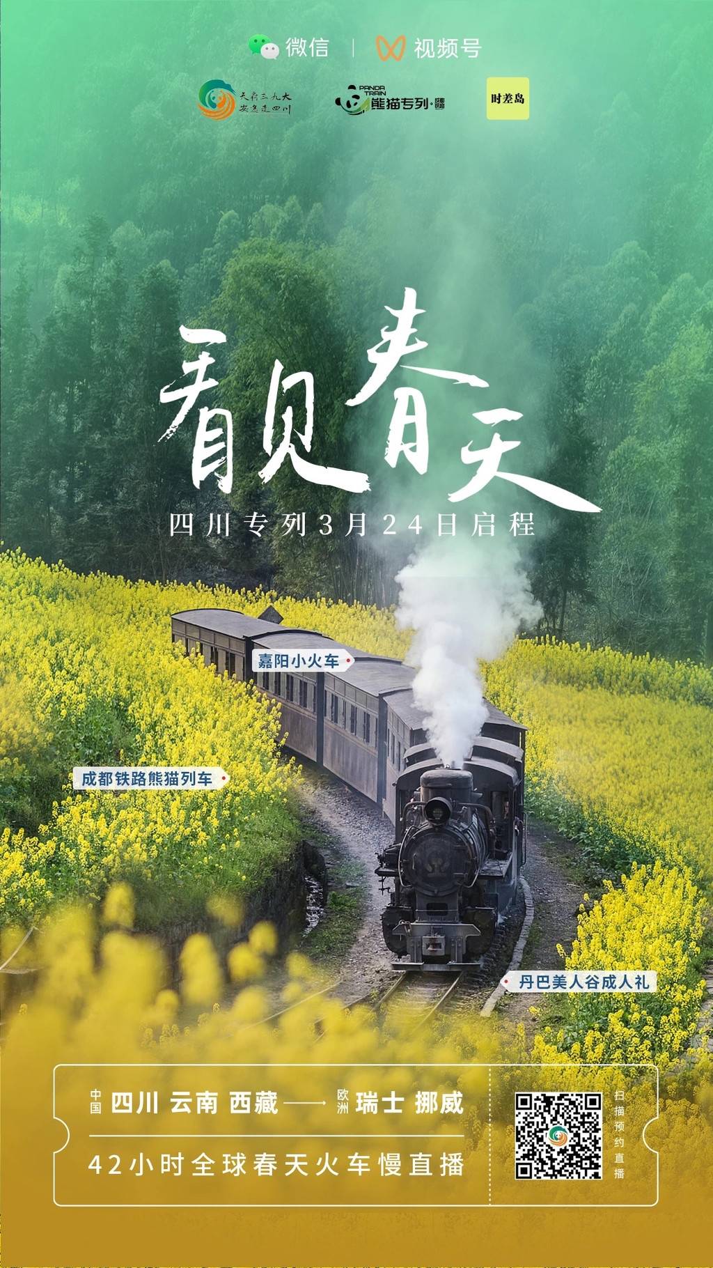 搭乘春天火车来到四川,把最逍遥的人间春景带给你,3月24日9:30-18:00,8小时30分钟慢直播——开往春天的列车即将启程,@四川文旅@四川在线@微信时刻@时差岛等视频号将在线输出春天美景。