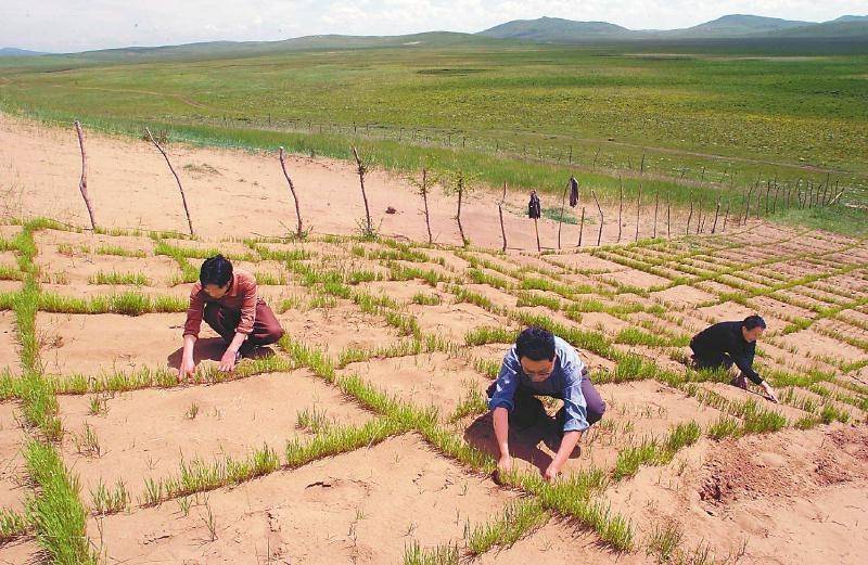 2007年 4月8日,当地群众在若尔盖县麦溪乡和辖曼镇实施防沙治沙项目。