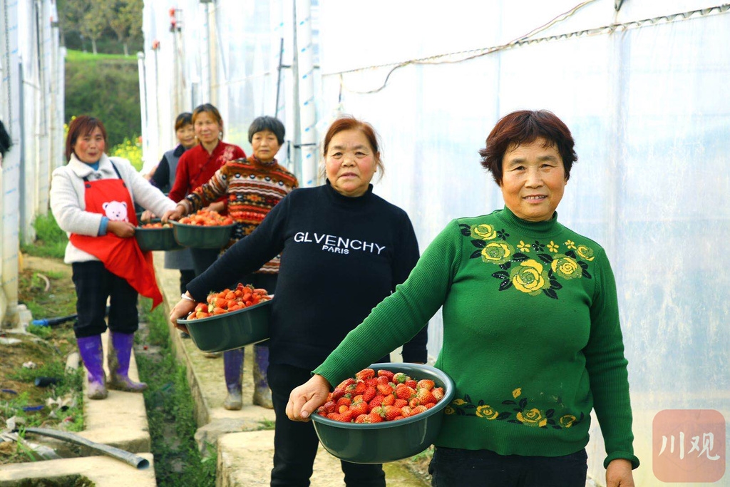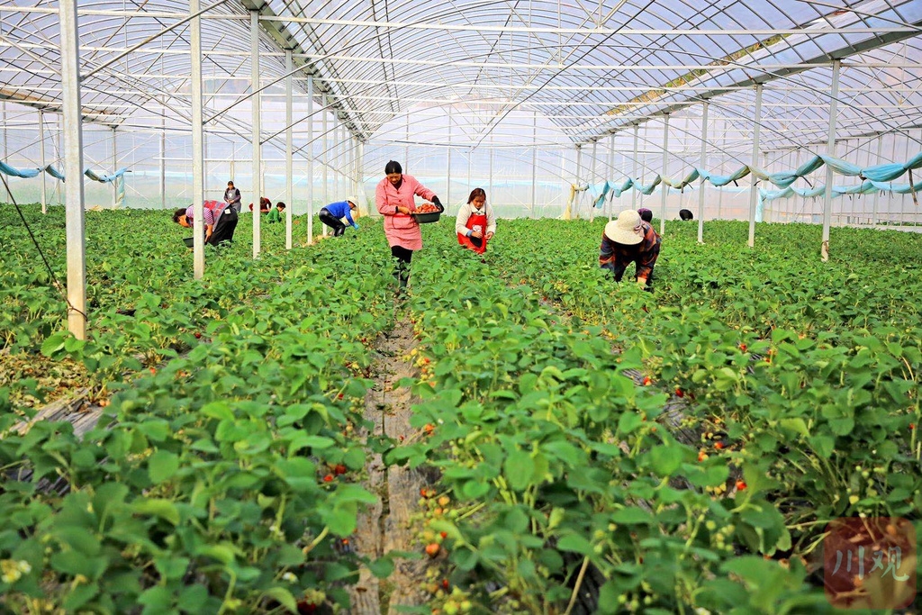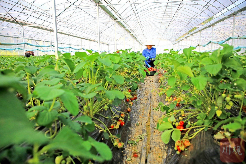 3月22日,广元市朝天区中子镇转斗草莓种植示范基地,村民正在采摘草莓。当前正是第二节草莓采摘季,当地300多个标准化草莓种植大棚内草莓长势喜人,一颗颗果型饱满、色泽鲜艳的草点缀在簇簇绿叶间,宛如一颗颗红灯笼,令人赏心悦目。