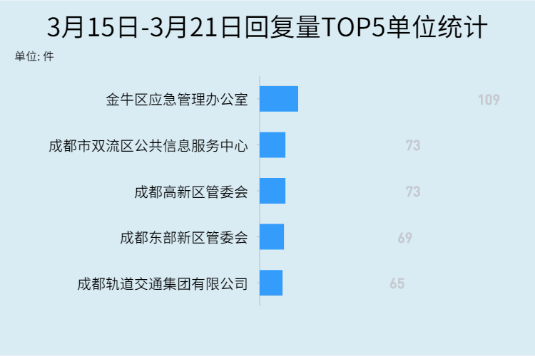 从具体接件转办单位来看,全川转办回复量排名上前五的单位分别为: