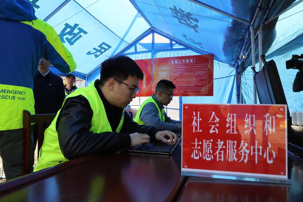 现场,演练人员在“地震综合应急救援”演练中,模拟局部地区发生6级地震,共青团组织在当地抗震救灾指挥部的统一指挥下,牵头成立社会管理服务组,协同相关部门搭建志愿者和社会组织协调站,按照“快速响应—登记报备—供需对接—精准参与—有序撤离”机制,科学有序参与灾害应对。演练队伍第一时间对社会发布《告志愿者书》,甫一发出,协调站就开始处理应急志愿服务队伍线上响应、登记报备、线下备勤及志愿者报名登记等工作。