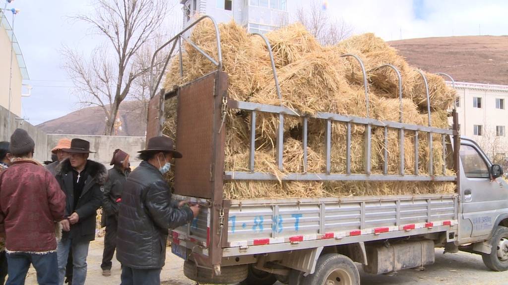 下罗科马乡达色村村民托麦在领取饲料后高兴地说:“前两天刚下了一场大雪,我们正愁牧场上的牦牛饲草问题,就接到了免费发放饲草饲料的电话,有了这些物资,村里900多头牦牛的饲草有保障了。”