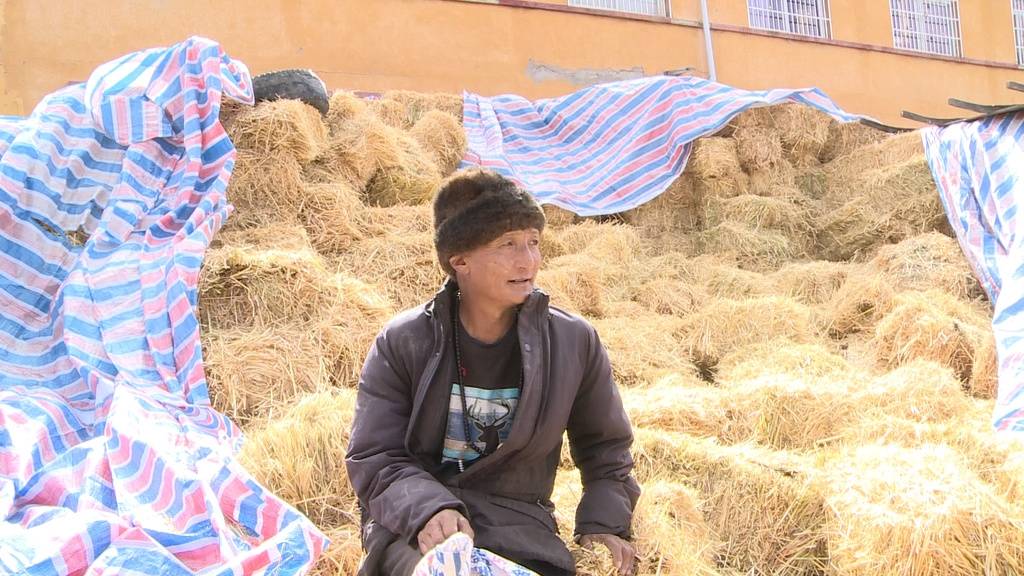 在虾拉沱粮站,站长吴晓君正忙着为牧民发放青干草、青稞粉,他一直不停地登记。吴晓君说:“在牧区乡饲料短缺的情况下,县委政府统一安排部署,给予专项资金,为老百姓发放饲草和饲料,解牧民燃眉之急。”