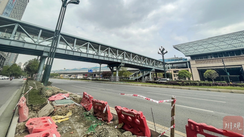 成都地铁植物园站外面的人行天桥全景。