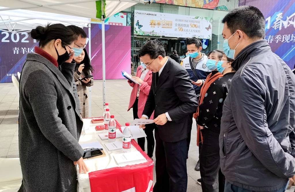 3月24日记者从成都市青羊区总工会获悉,为进一步帮助企业解决节后用工难题,青羊区总工会联合青羊区区人社局、区退役军人事务局在青羊区新城市广场举办2021年“春风行动”招聘会,吸引1200余名求职者进场找心仪的工作,达成就业意向100余人。