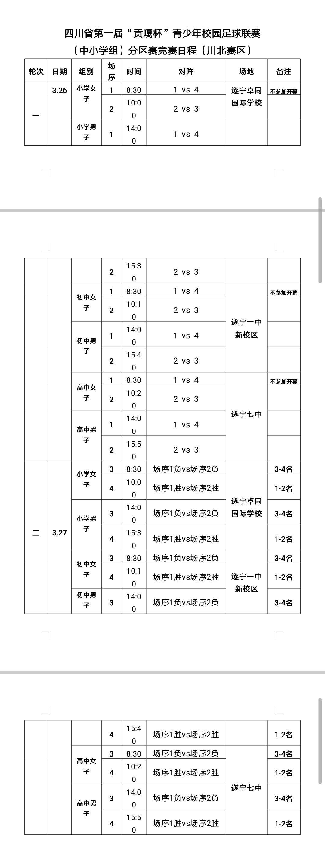 “贡嘎杯”青少年校园足球联赛(中小学组)川北赛区完整赛程